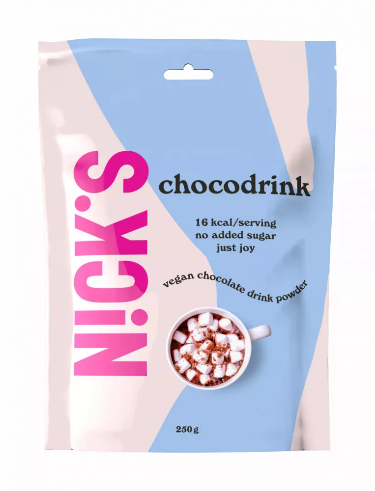 kakaový prášek (40 %) ve vodě rozpustná kukuřičná mouka, sladidlo: erytritol, emulgátor: slunečnicový lecitin, přírodní vanilkové aroma, sladidlo: steviol-glykosid.